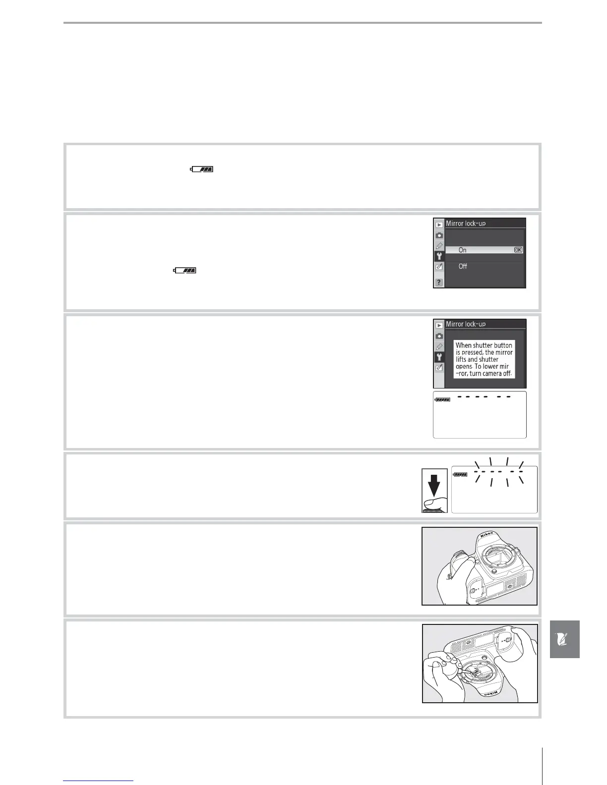 button to display the camera menus and select Mirror lock-up