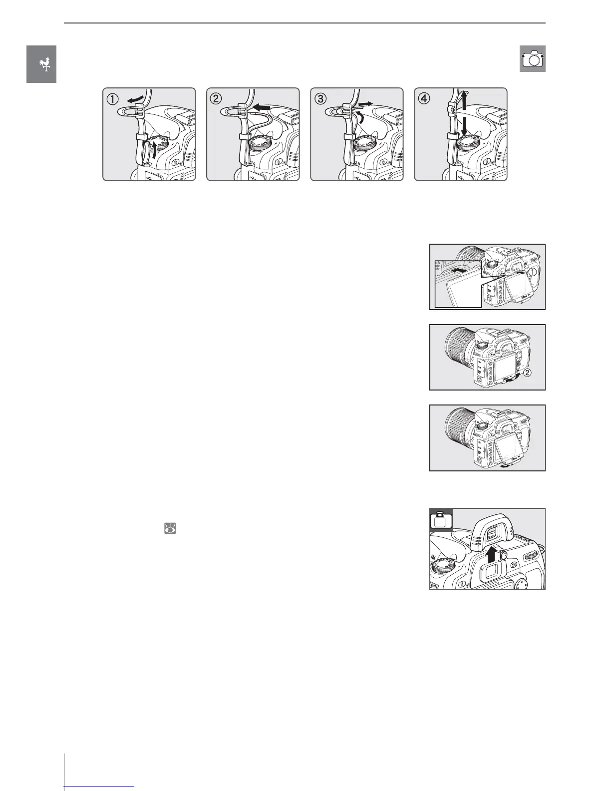 Attach the camera strap as shown below.