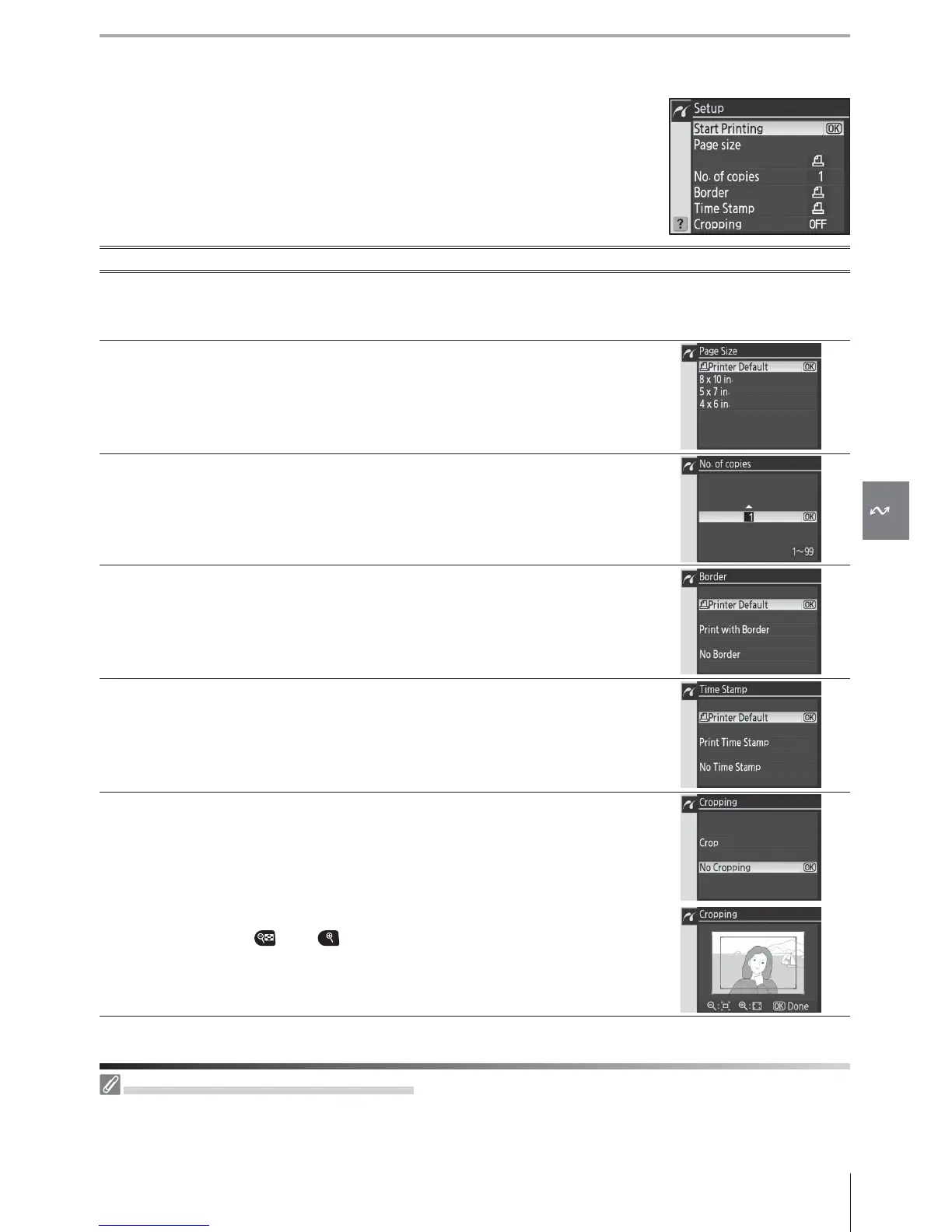 (default page size for current printer), 3.5 x 5 in., 5 x 7 in.,
