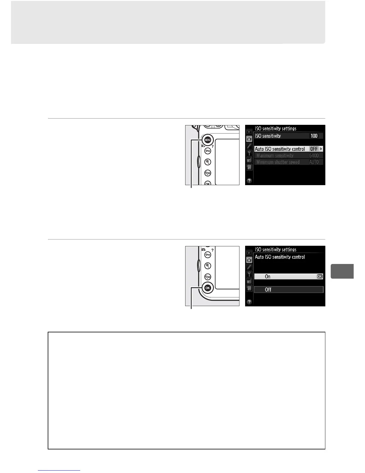 sensitivity settings in the shooting menu, highlight Auto ISO