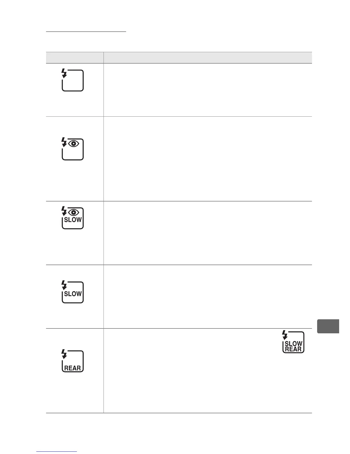 The D800 supports the following flash modes: