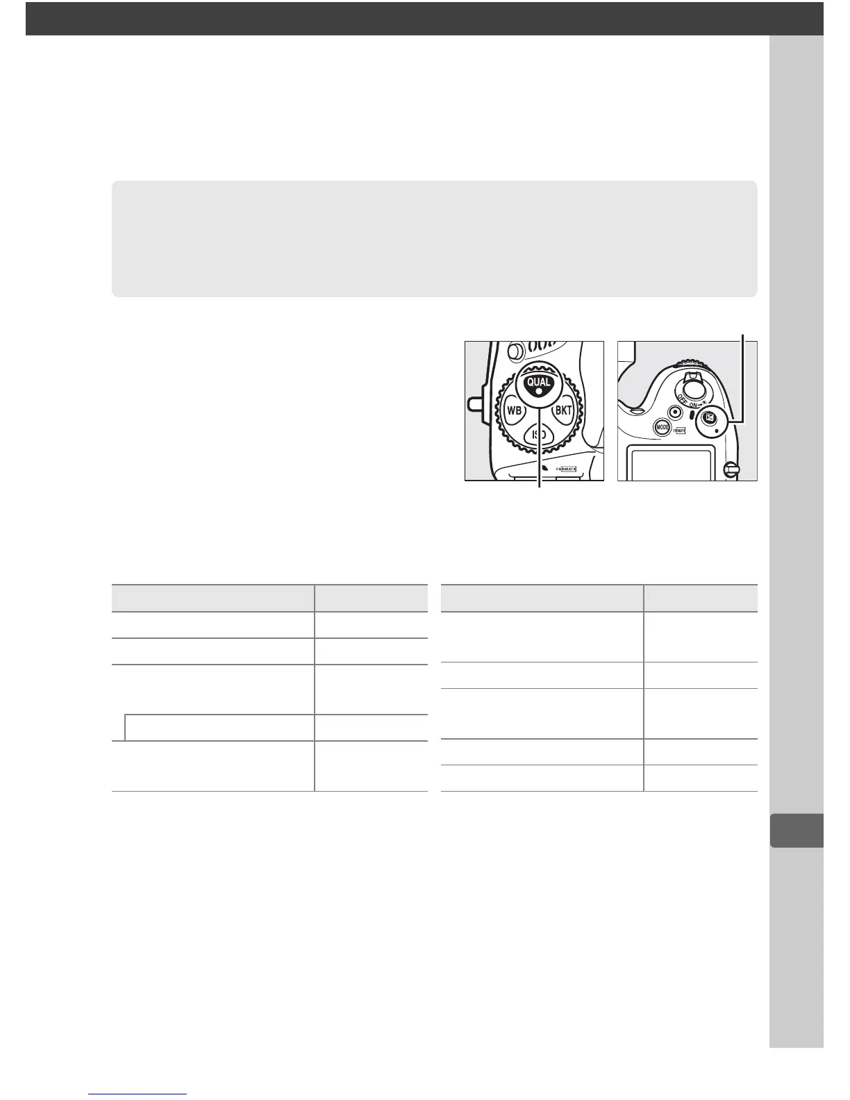 ❚❚ Settings Accessible from the Shooting Menu