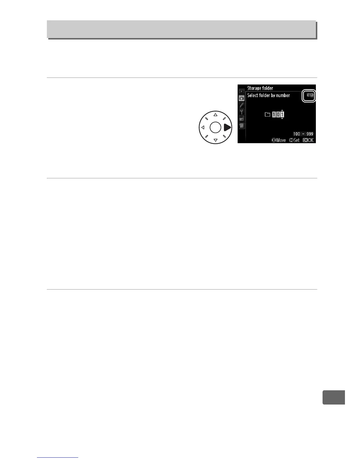 menu (to exit without changing the storage folder, press the