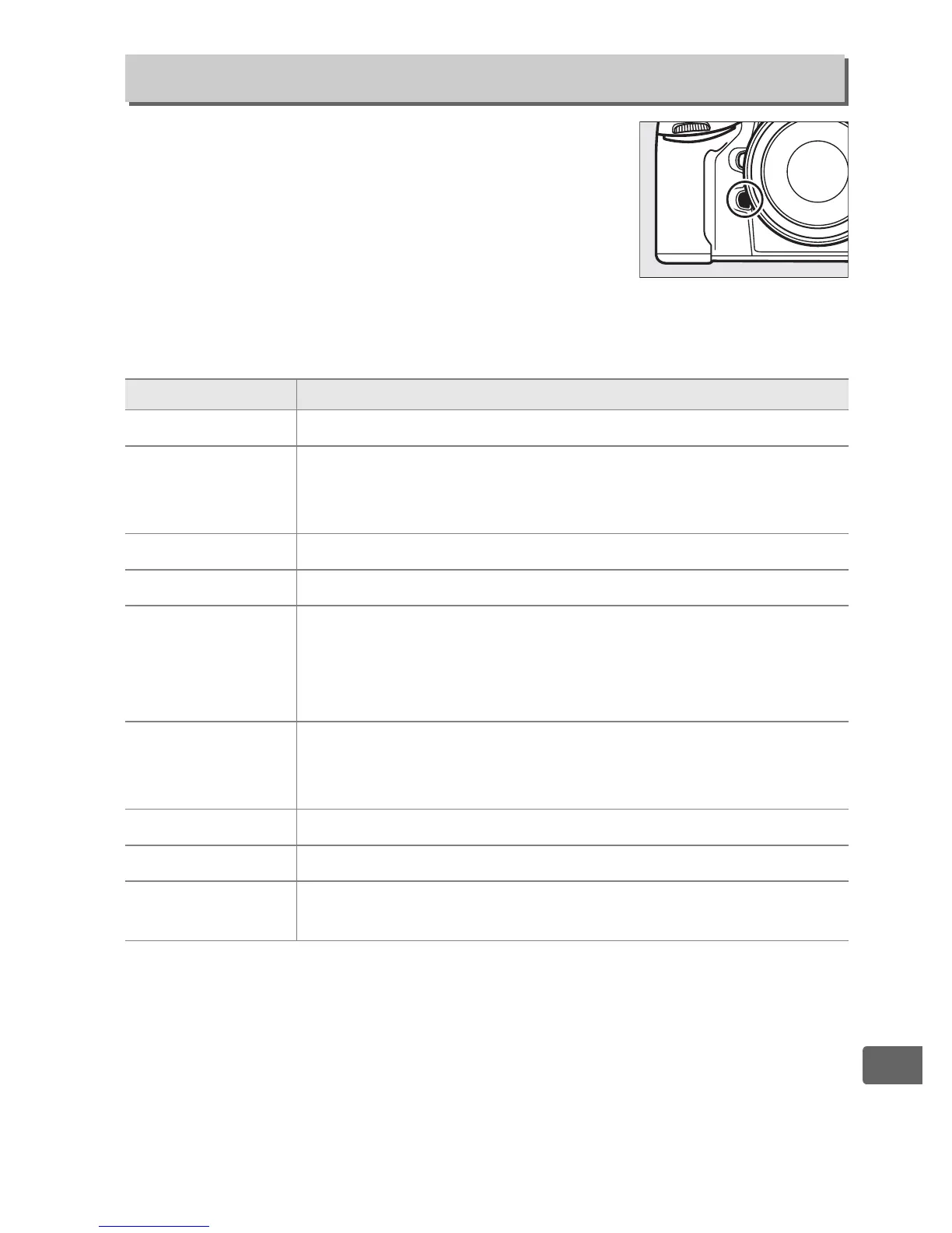 Press the Fn button to preview depth of field (0 117).