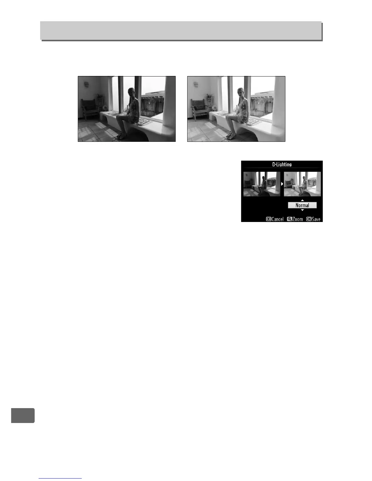 D-Lighting brightens shadows, making it ideal for dark or backlit