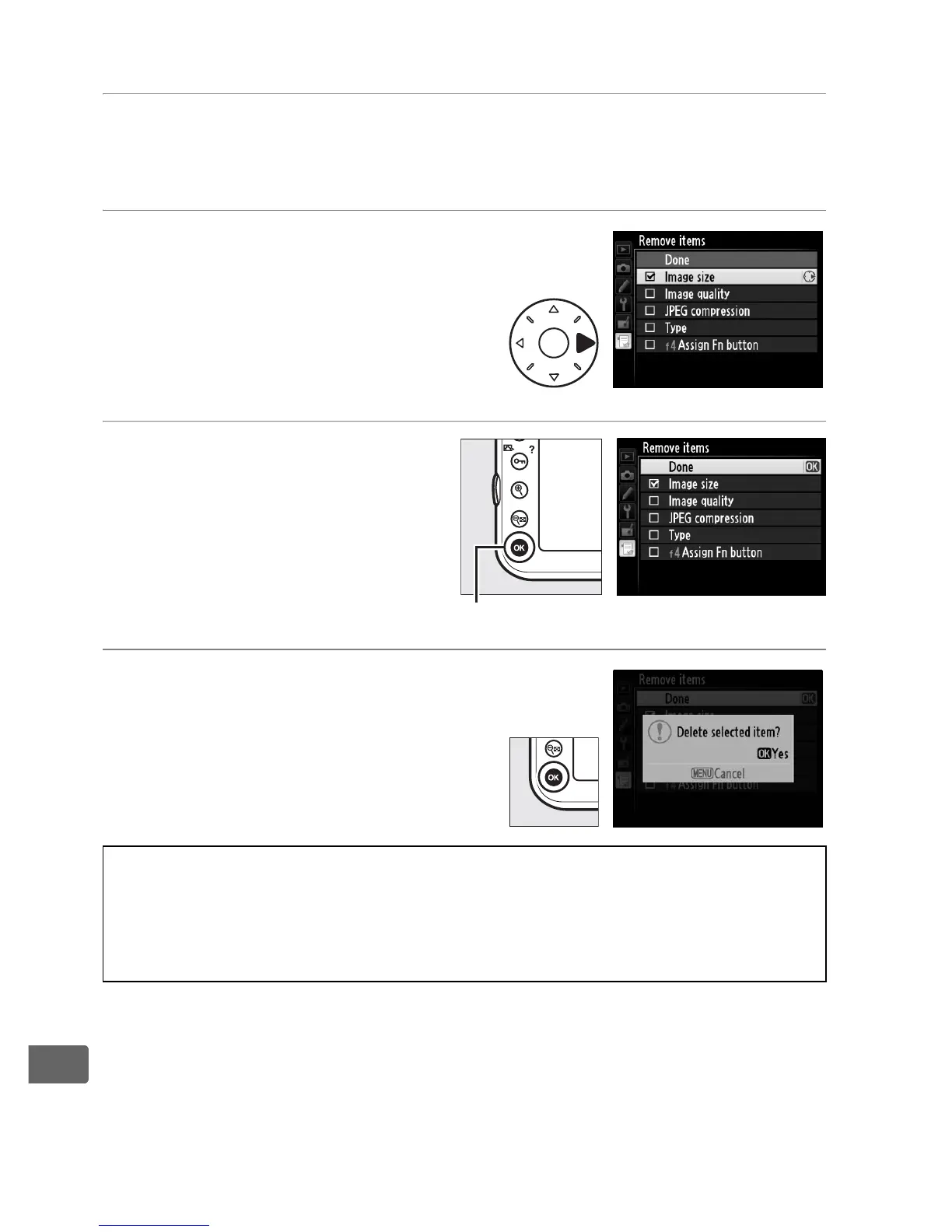 To delete the item currently highlighted in My Menu, press the O (Q)