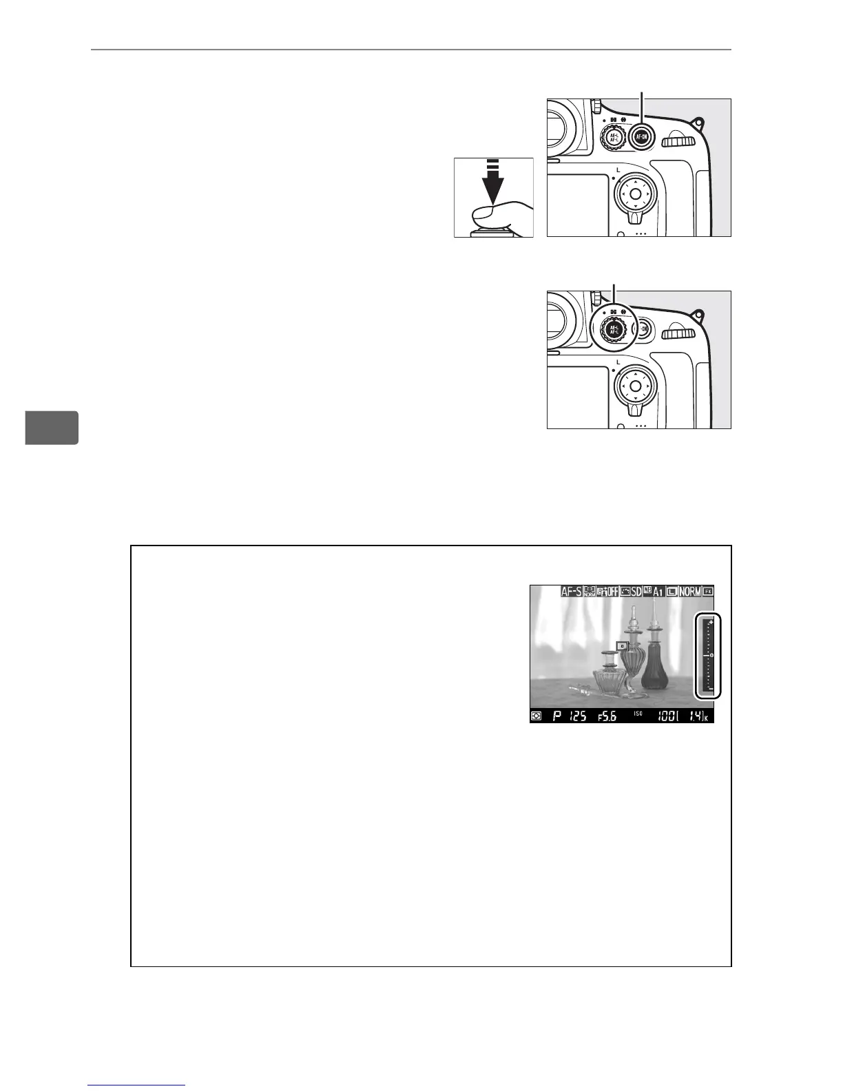the A AE-L/AF-L button (0 128); focus locks while the shutter-