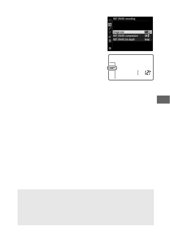 selected for NEF (RAW) compression and NEF (RAW) bit depth in the