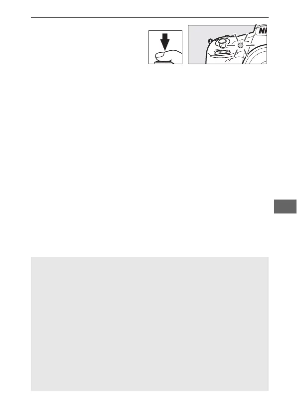 button to raise the flash and wait for the M indicator to be displayed in