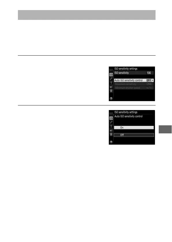 1 Select Auto ISO sensitivity control.