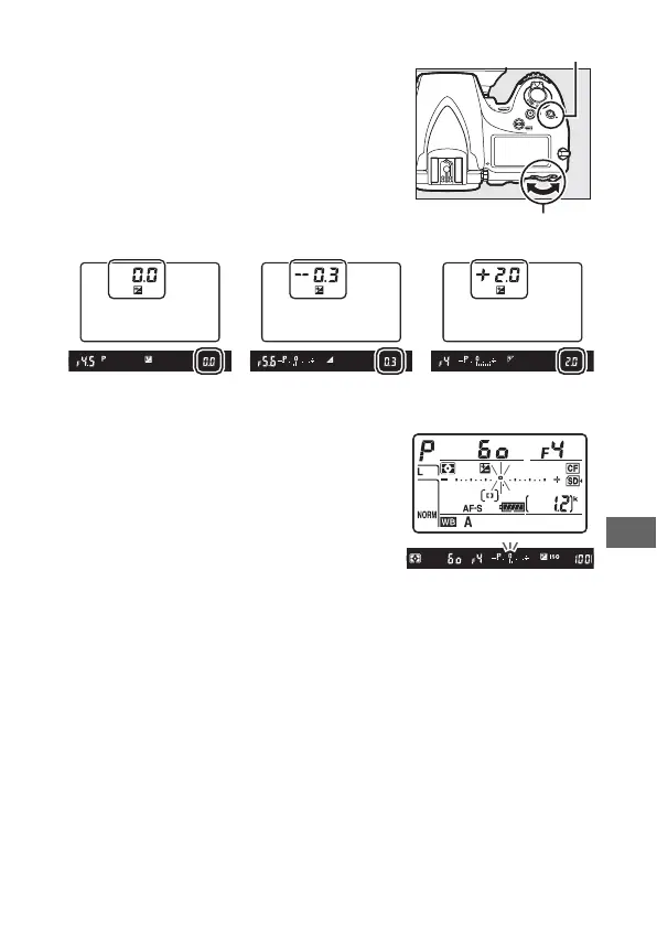 confirmed in the exposure indicator by pressing the E button.