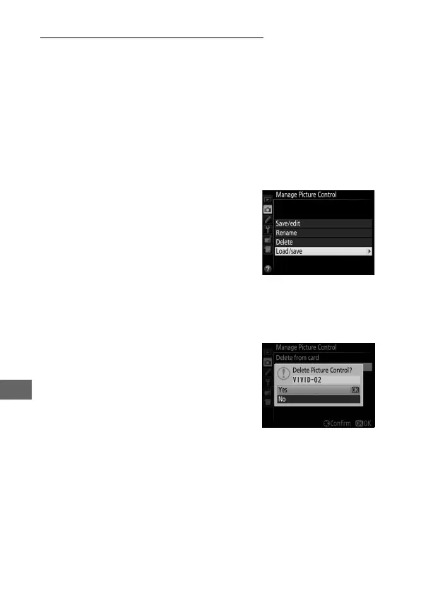 • Copy to card: Copy a custom Picture Control (C-1 through C-9)