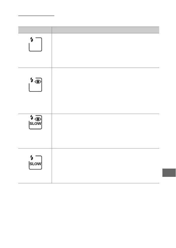 The camera supports the following flash modes: