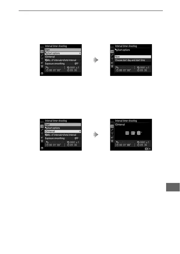 Choose a start option, interval, number of shots per interval,