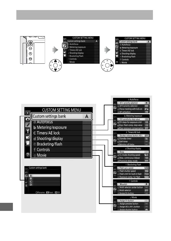 To display the Custom Settings menu, press G and select the