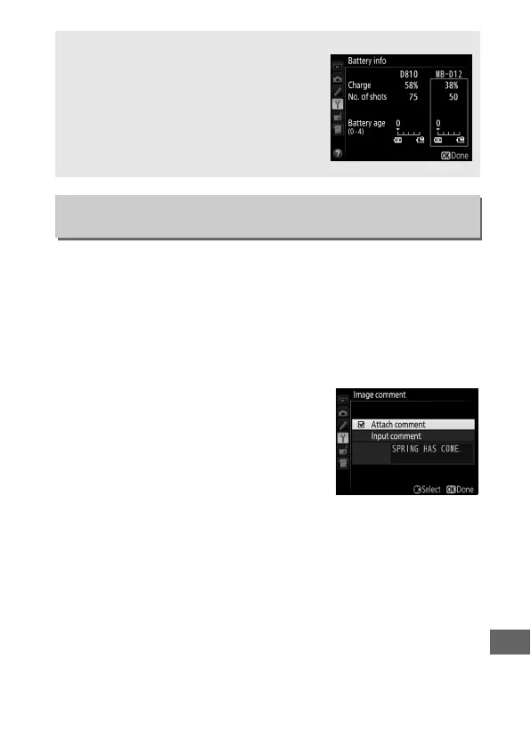 Comments can be viewed as metadata in ViewNX 2 (supplied) or