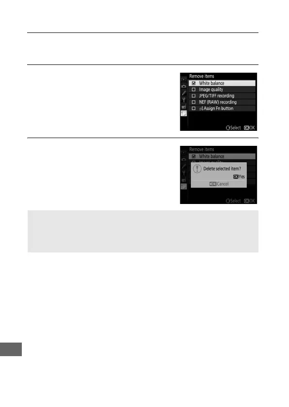 To delete the item currently highlighted in My Menu, press the O (Q)