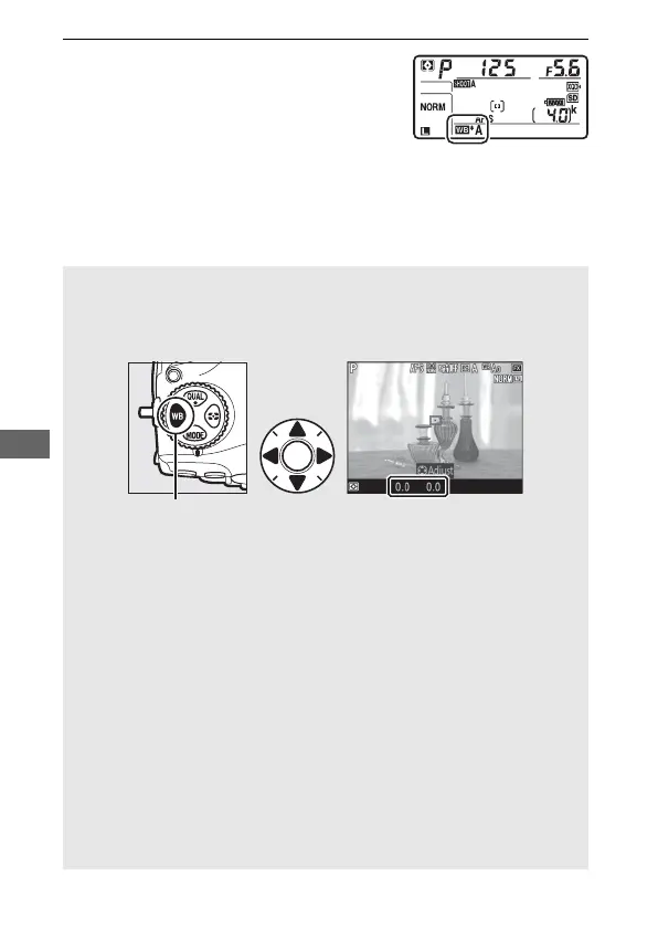 To fine-tune white balance during live view, hold the U button while