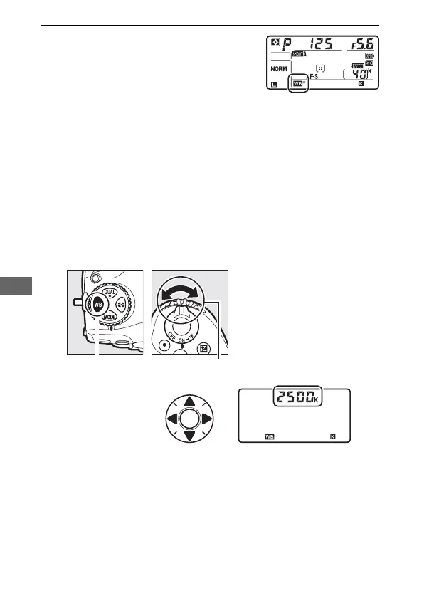 When K (Choose color temp.) is selected, the U button can