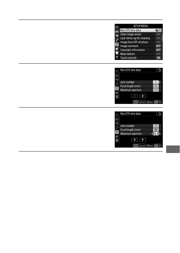 To enter or edit data for a non-CPU lens: