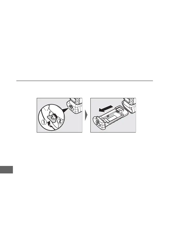 batteries, be sure that the camera is off and that the MB-D18