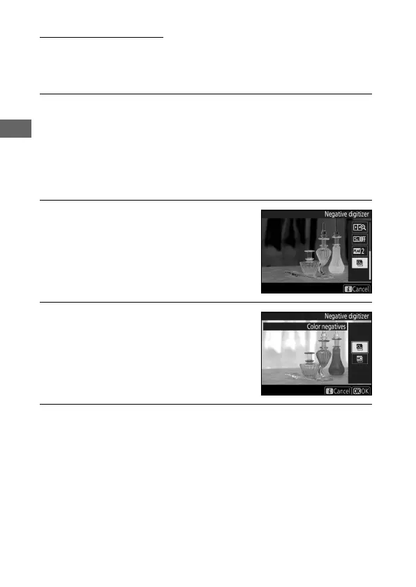 To record positives of copies of film negatives, press the i button