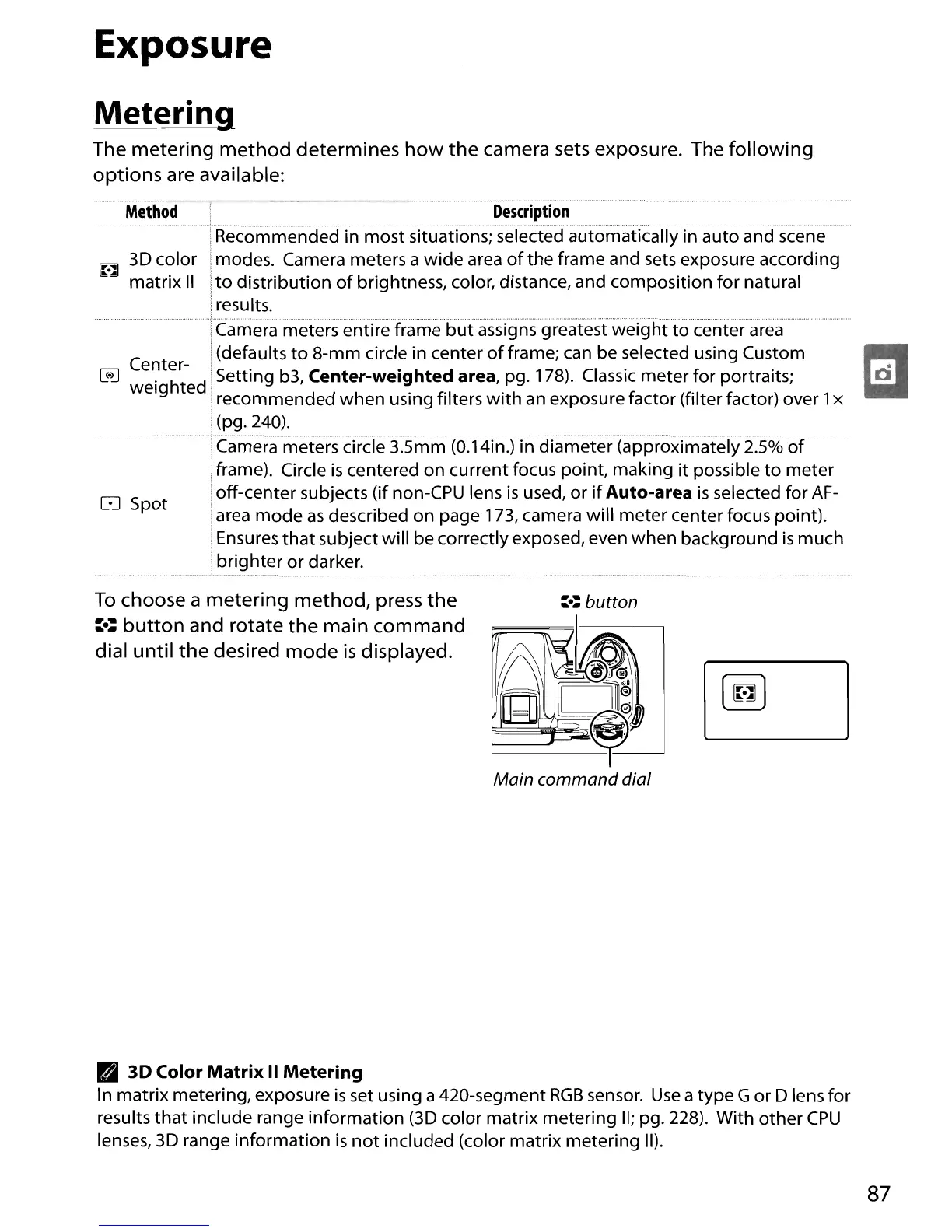 Setting b3, Center-weighted area, pg. 178). Classic meter for portraits;