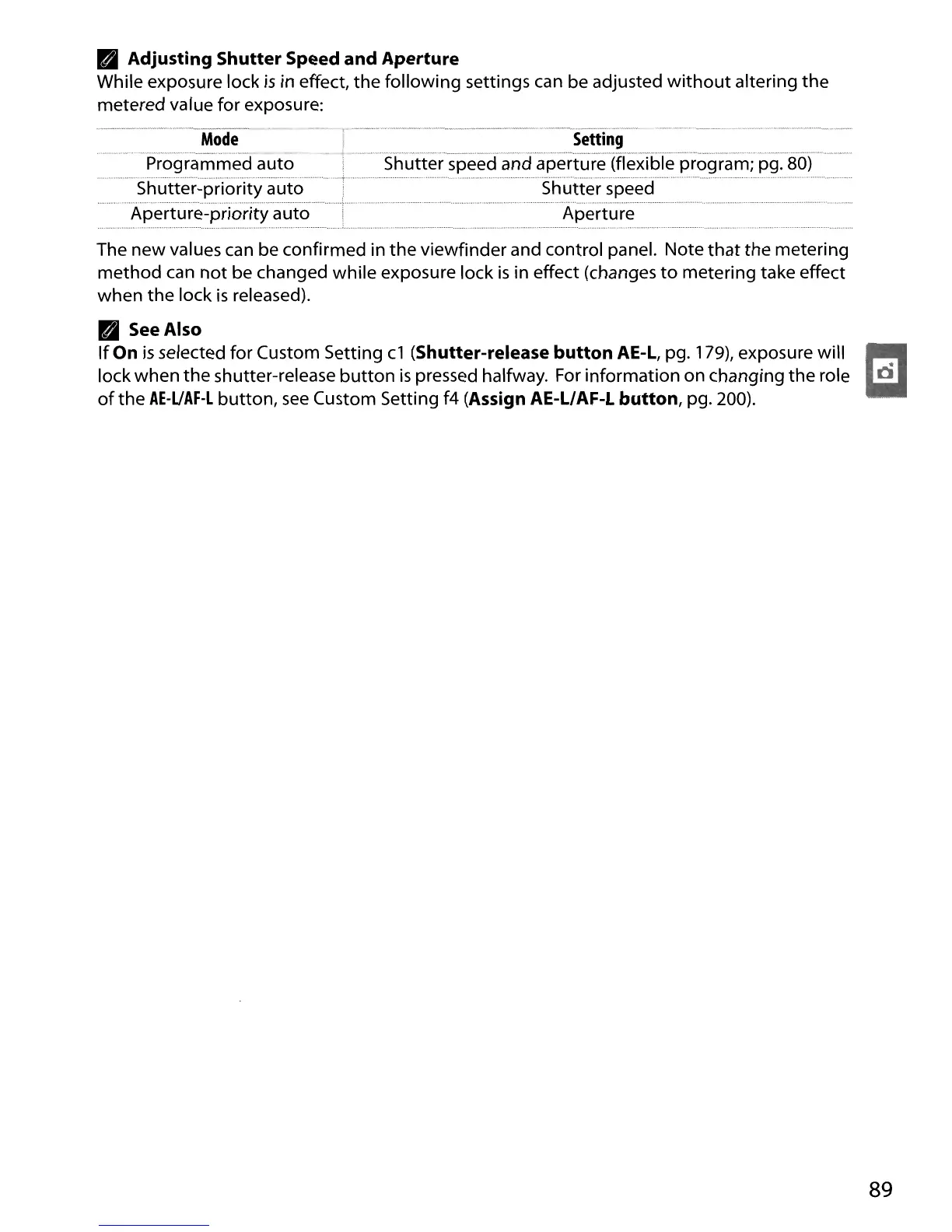 Custom Setting f4 (Assign AE-L/AF-L button, pg. 200).