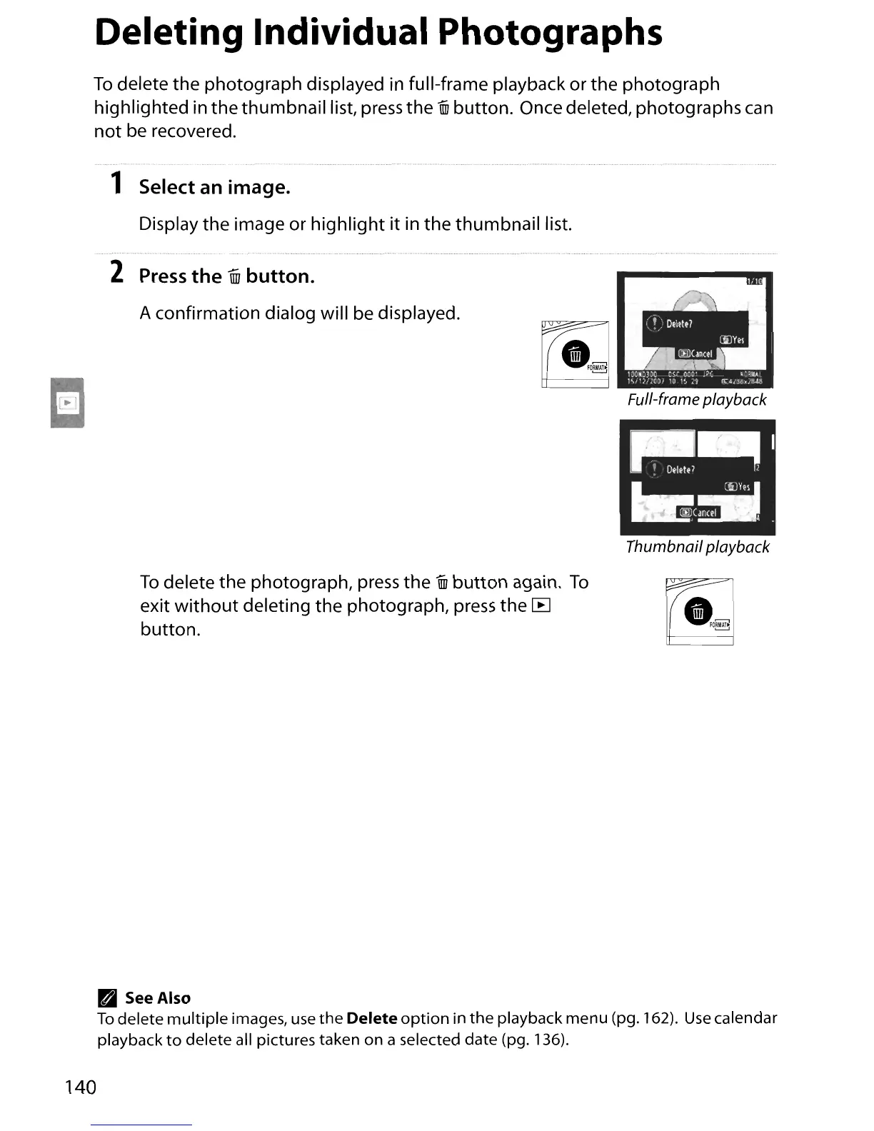 delete all pictures taken on a selected date (pg. 136).