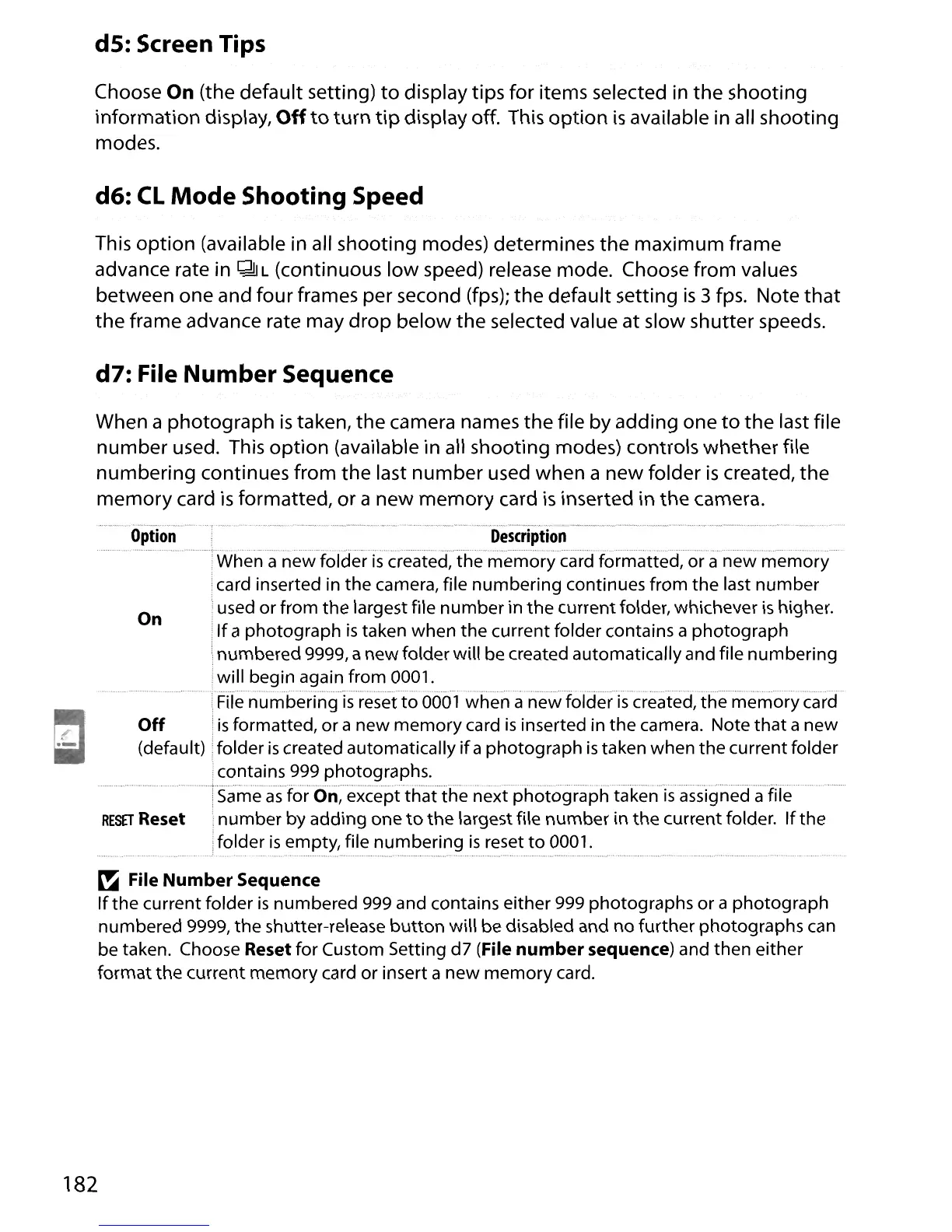 be taken. Choose Reset for Custom Setting d7 (File