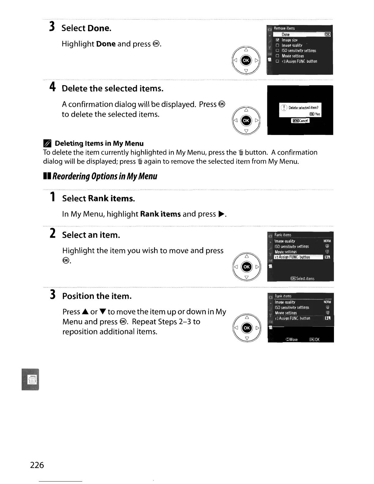 delete the item currently highlighted in My Menu, press the j button. A confirmation
