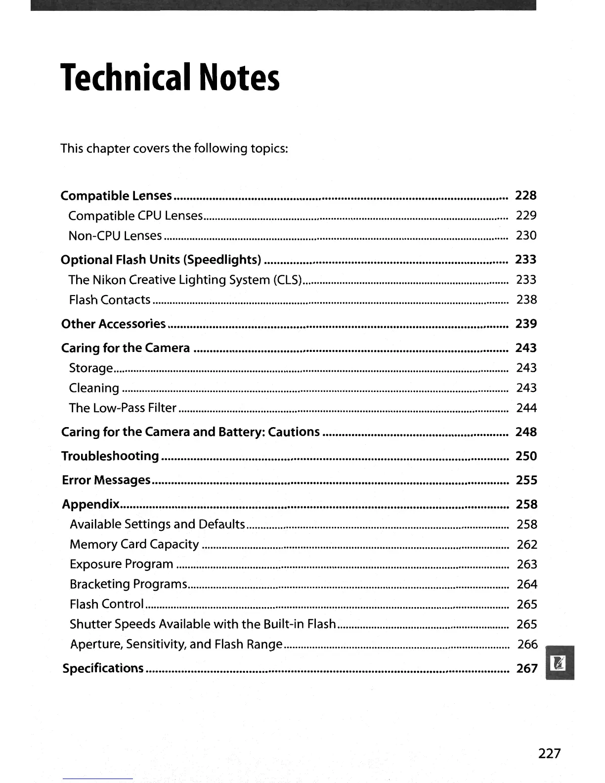 Compatible Lenses.....•...•...•..•....•....•..•.............................•...••....................•.........•..•..•.. 228