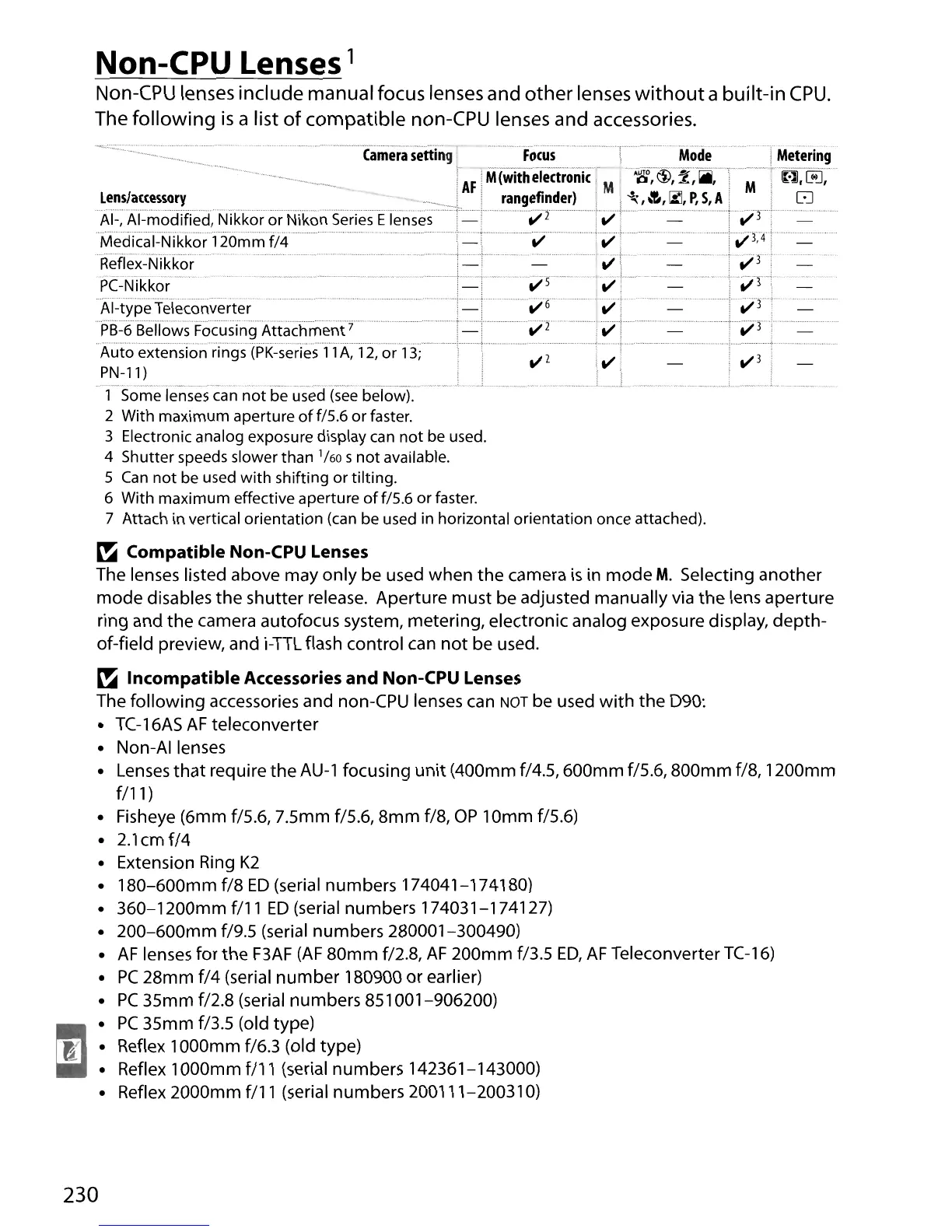 Incompatible Accessories and Non-CPU Lenses