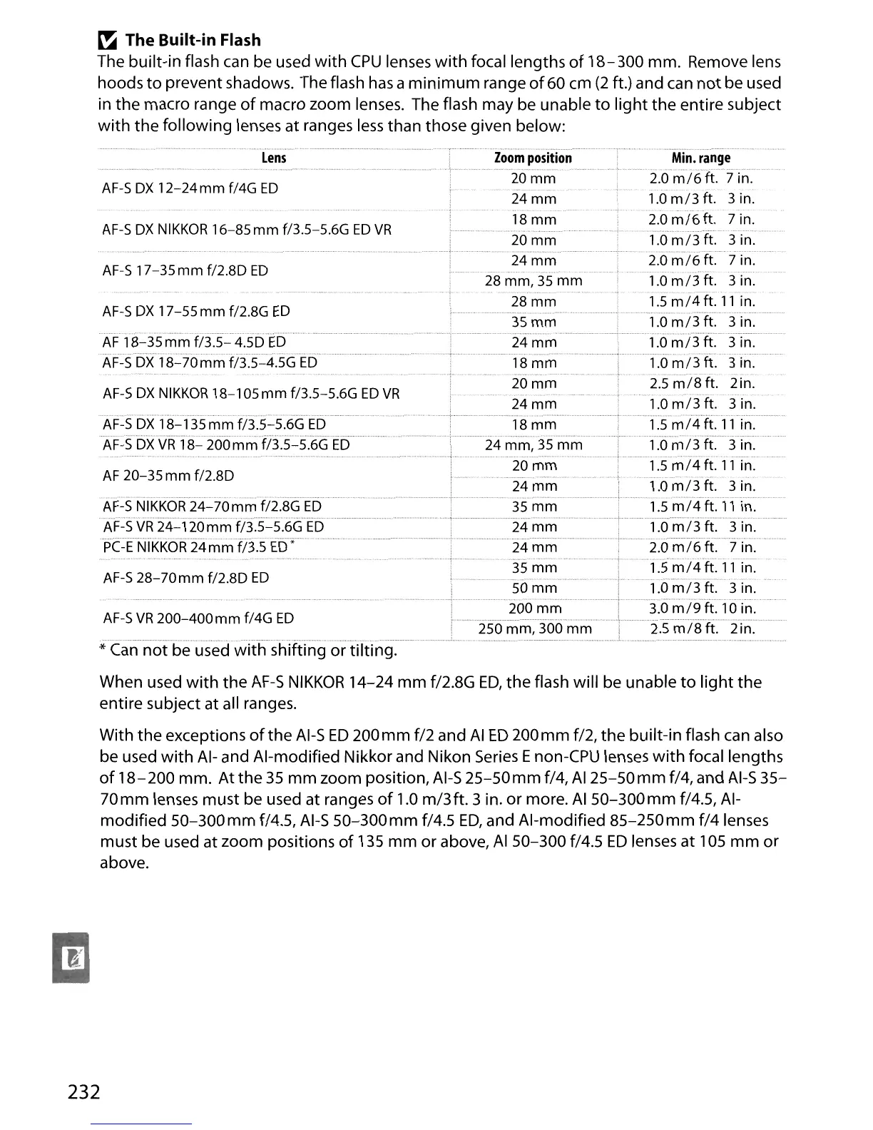 macro zoom lenses. The flash may be unable