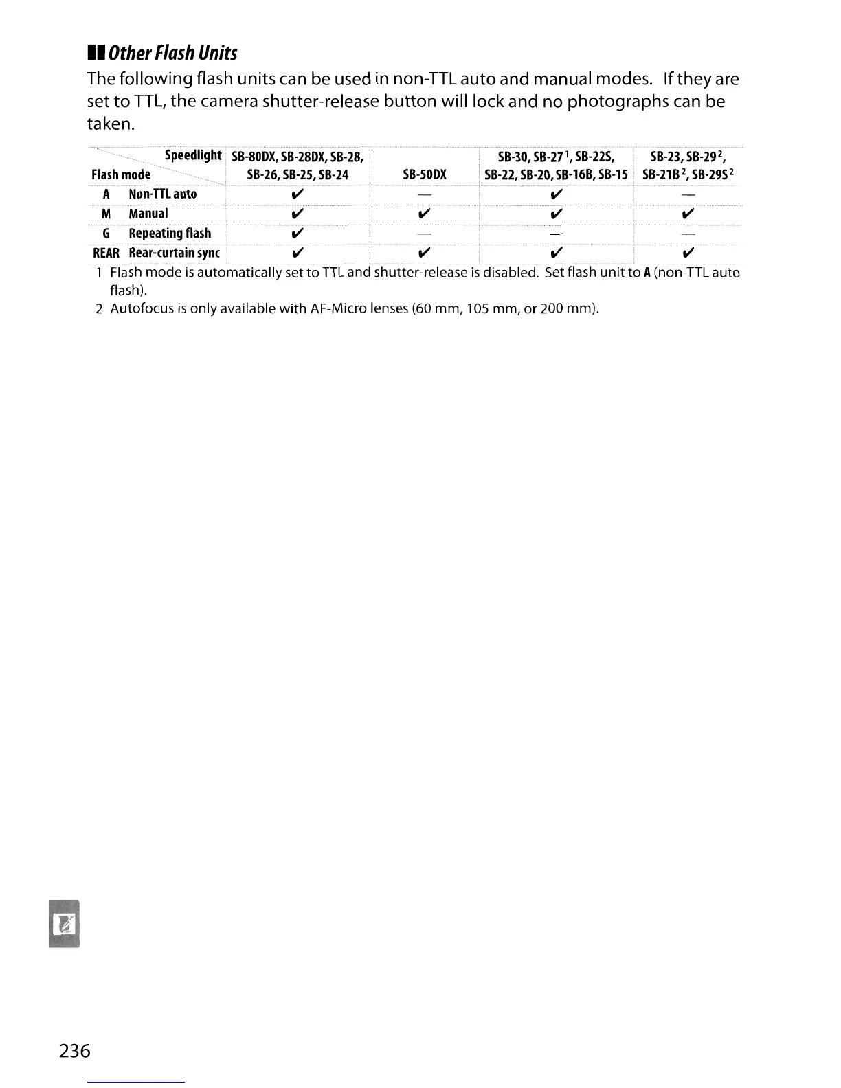 The following flash units can be used in non-TTL auto and manual modes.