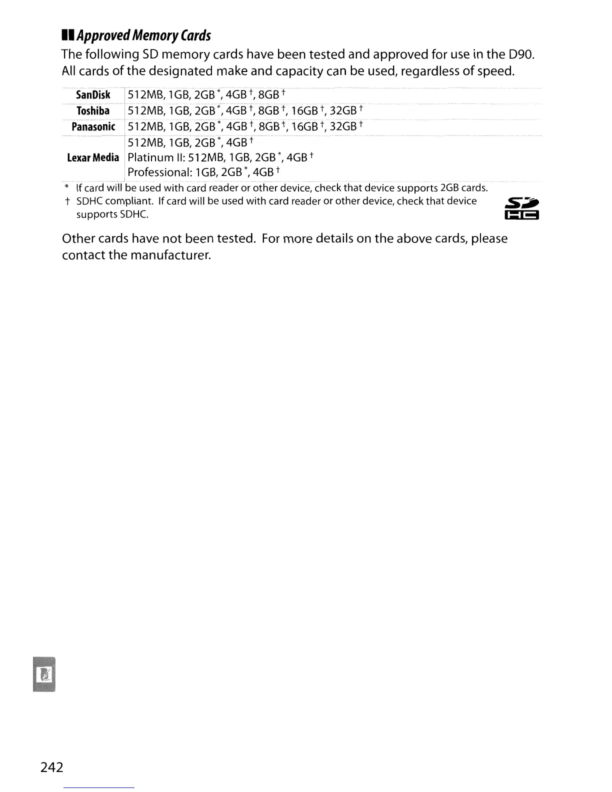 memory cards have been tested and approved for