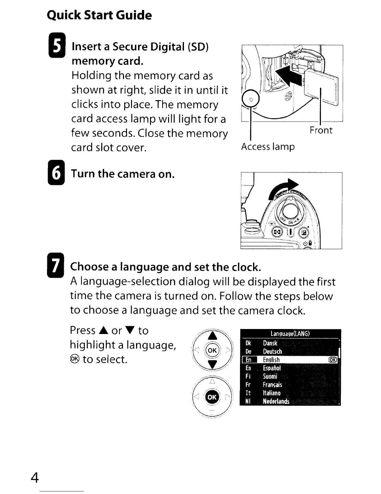 choose a language and set the camera clock.