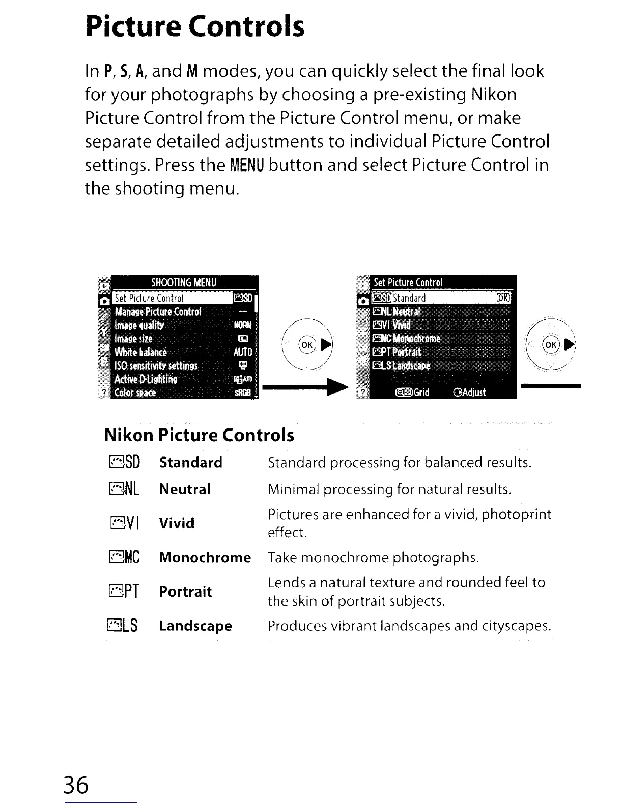 Picture Control menu, or make