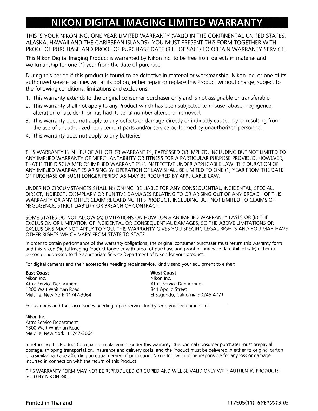 the warranty obligations, the original consumer purchaser must return this warranty form