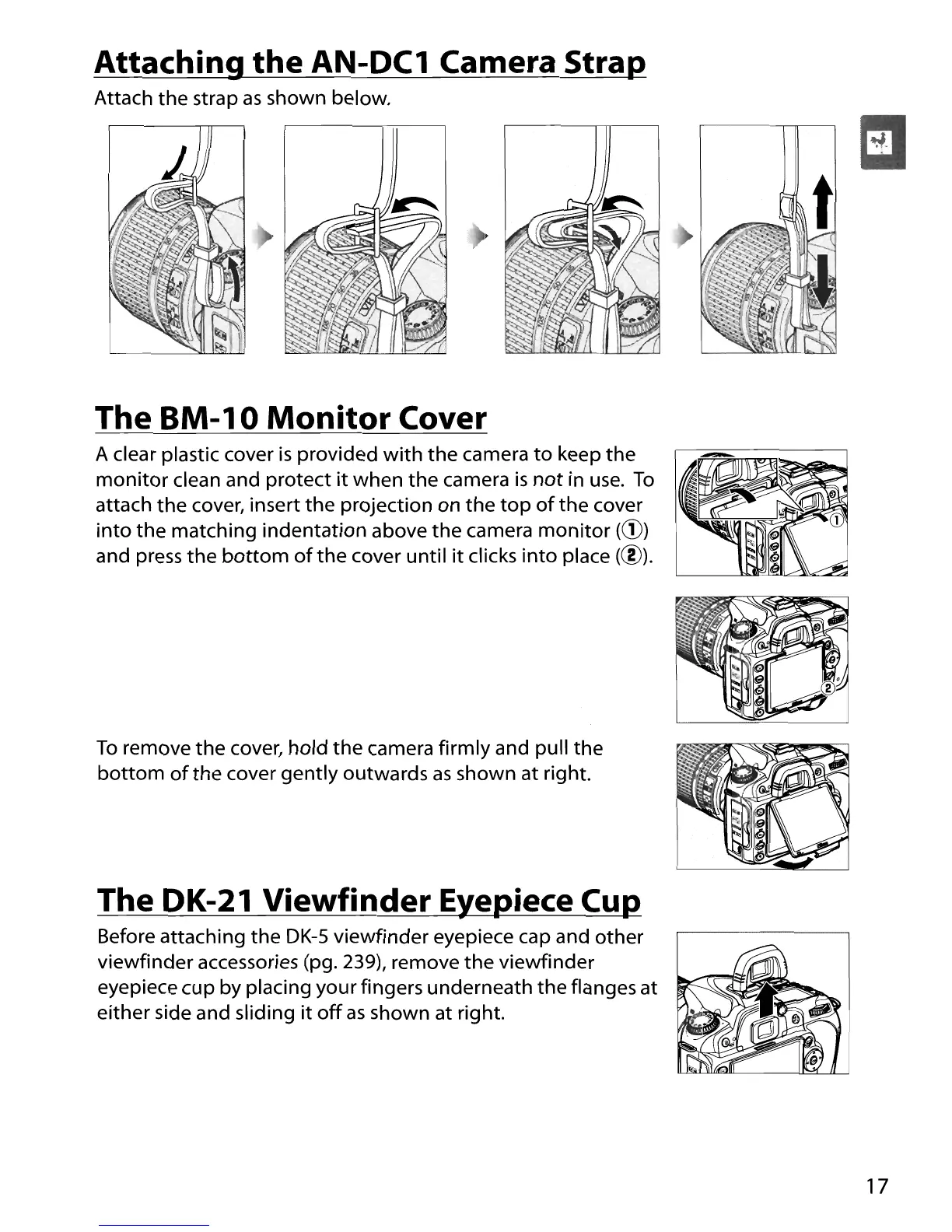 Nikon D90 - Attaching the AN-Dcl Camera Strap; The BM-L 0 Monitor Cover; The DK-21 Viewfinder Eyepiece Cup; Attaching the AN-DC1 Camera Strap
