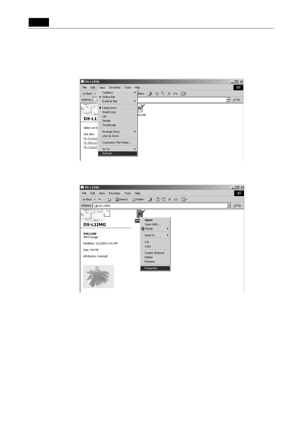 1) Open My Computer and display image file icons. Then select [View] - [Refresh] to