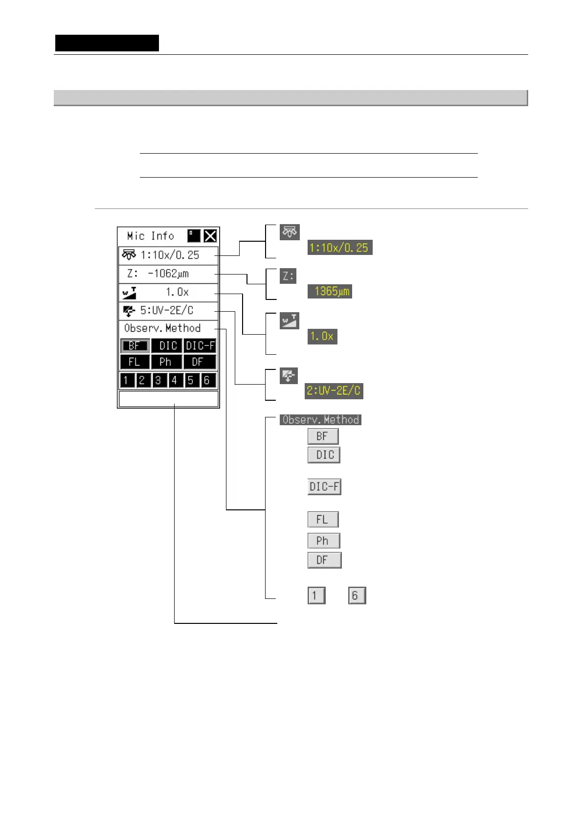 6.2.3 Microscope Status Display/Microscopy Setup Menu (MIC Info Menu)