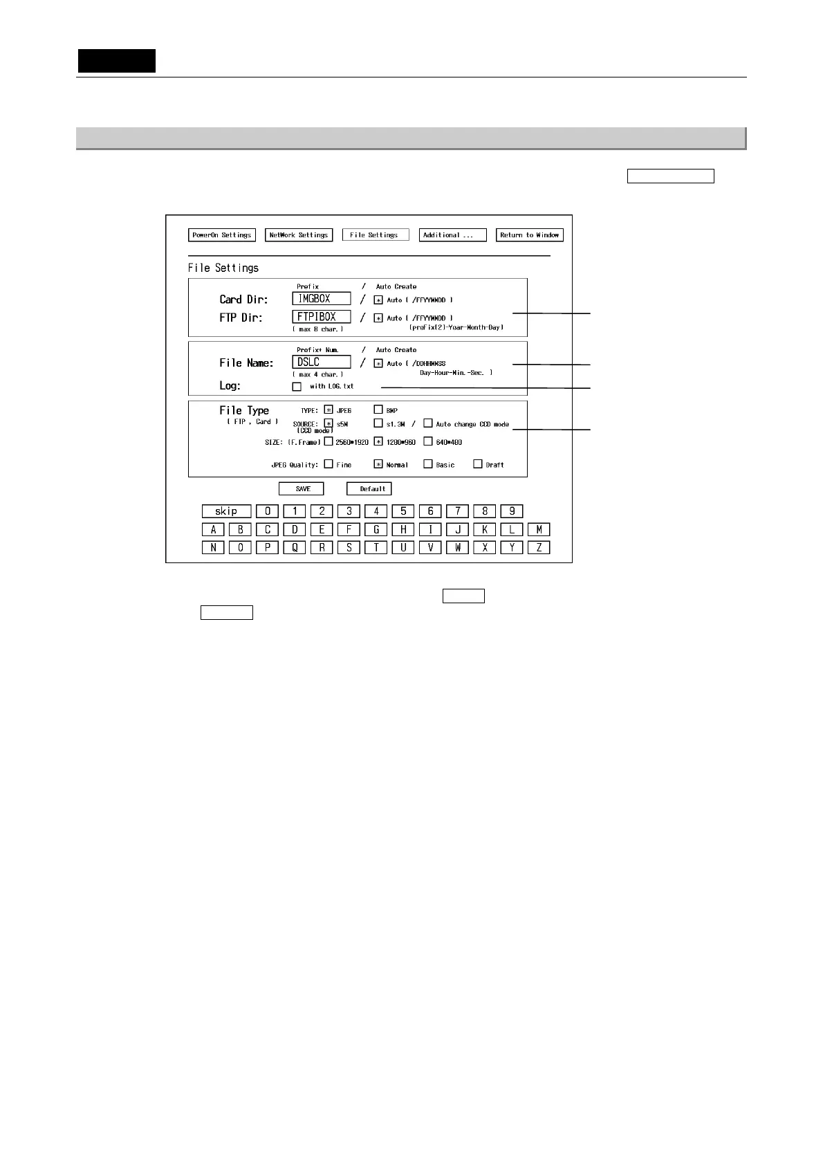 For Card Dir, specify a folder name used in a CF card. For FTP Dir, you can use up to eight