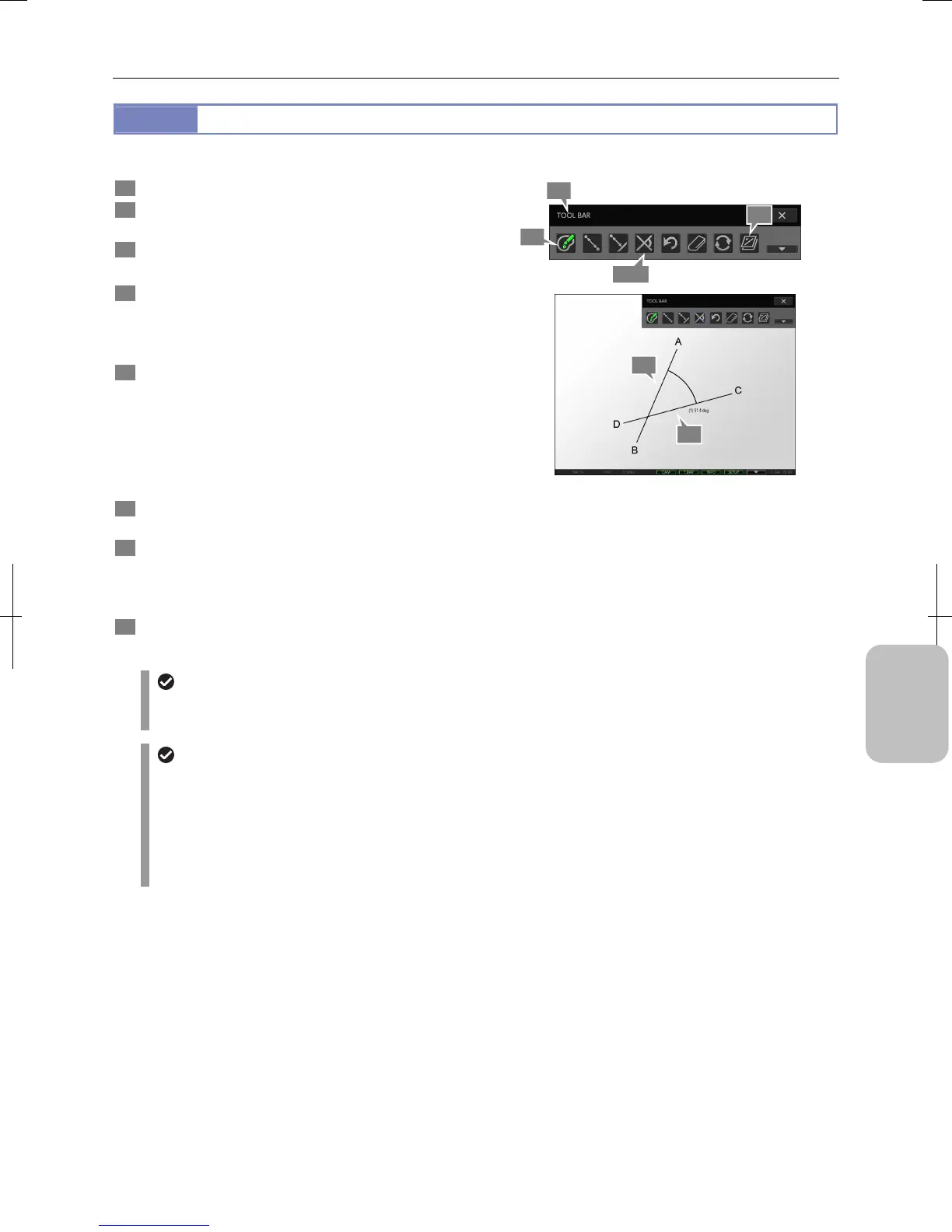 • When lines for measurement are drawn on the screen so that they do not cross, measurement results are