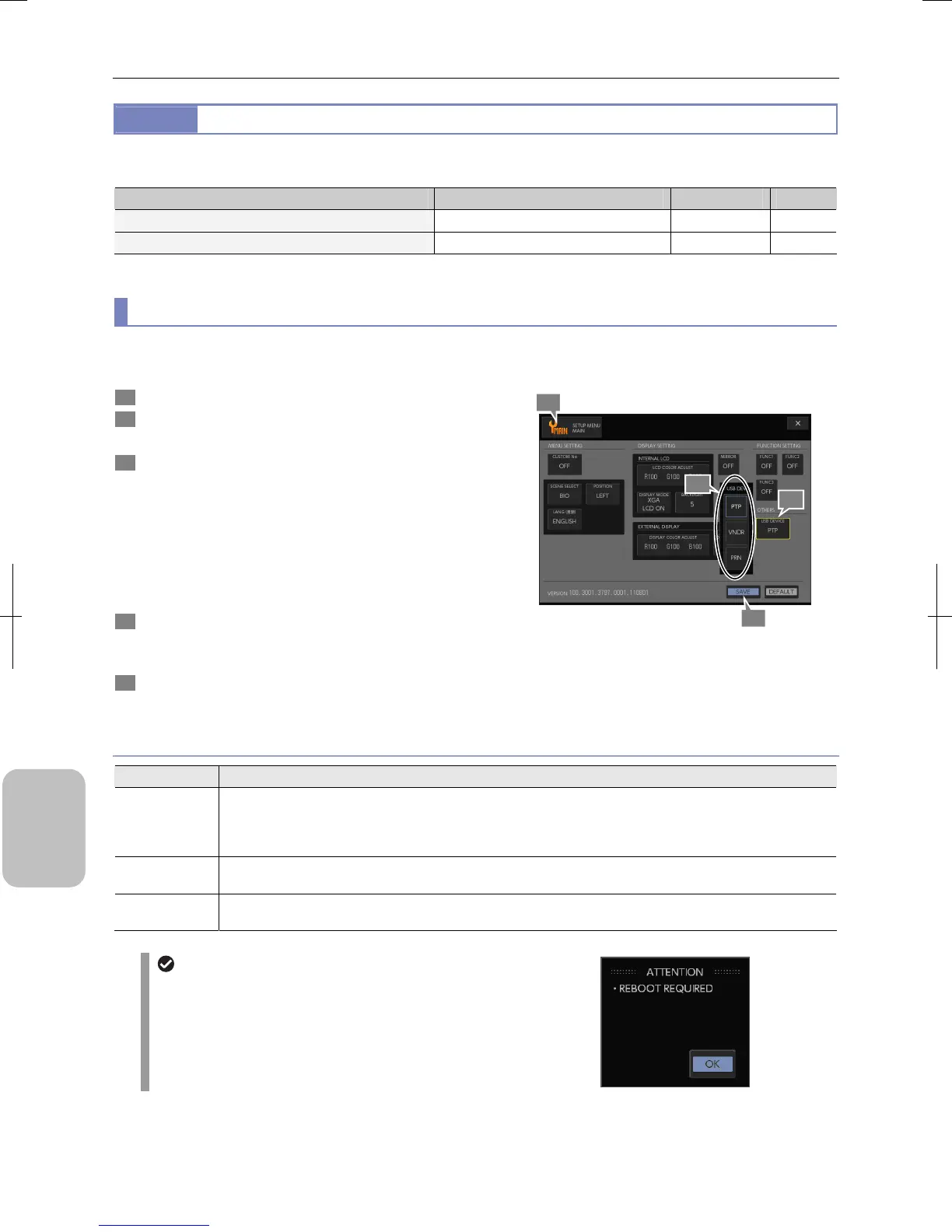 Switching of the USB device setting