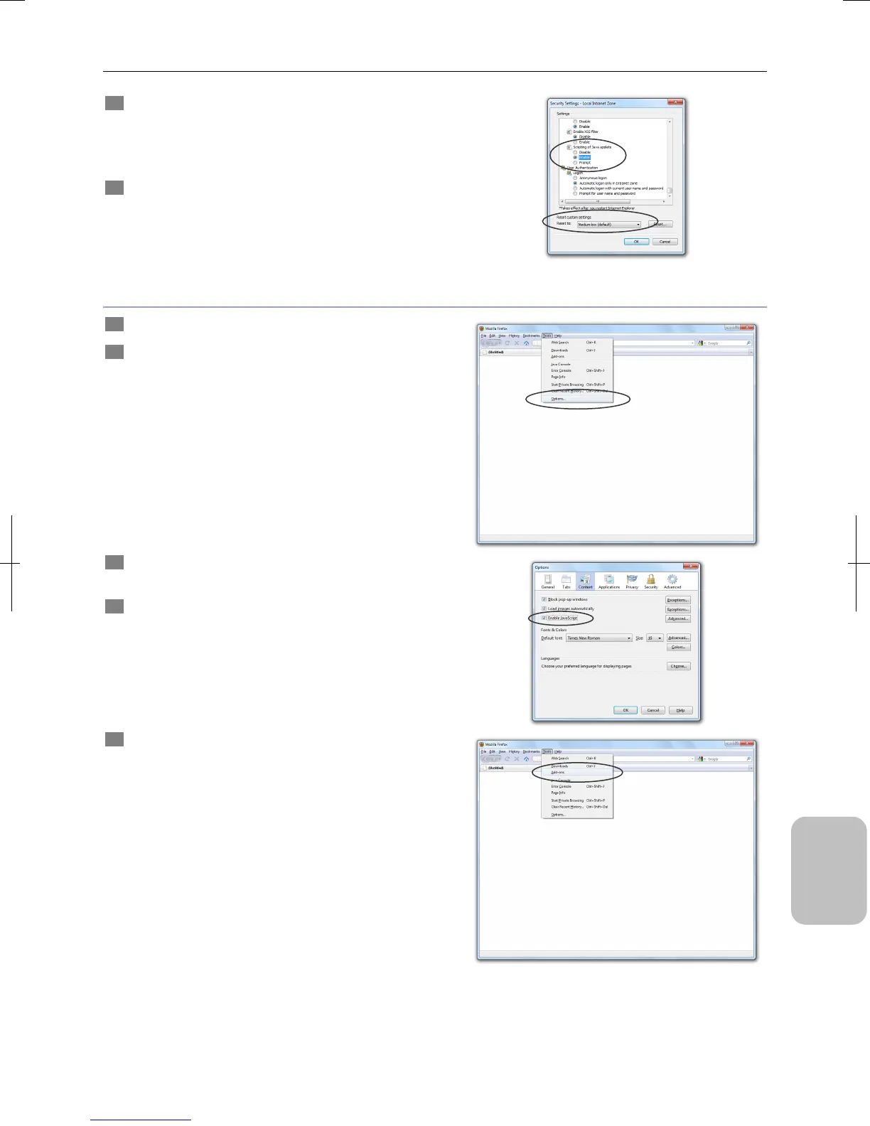 Set [Scripting of Java Applets] in [Settings] to [Enable].