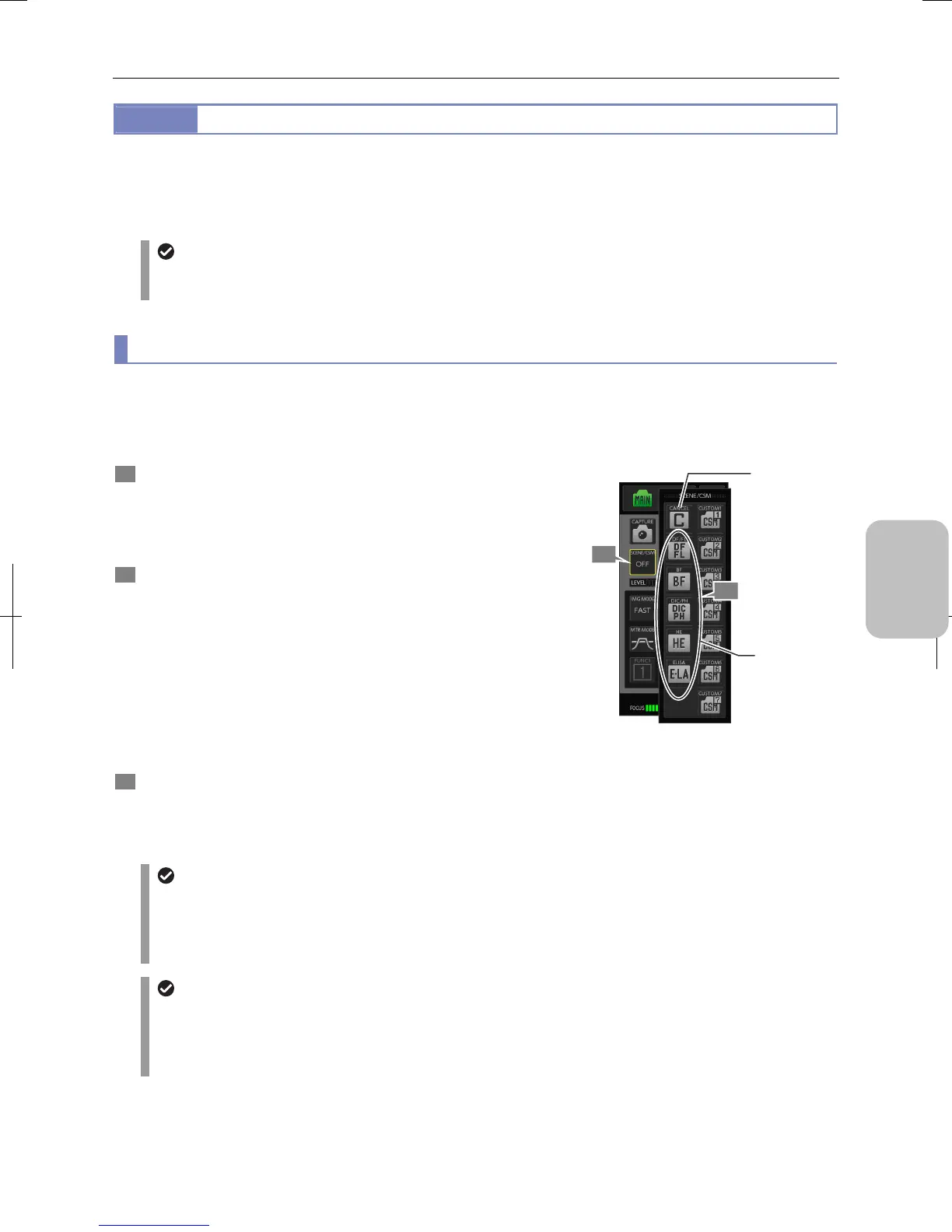 displayed on the [SCENE/CSM] button of [CAM MENU]. To