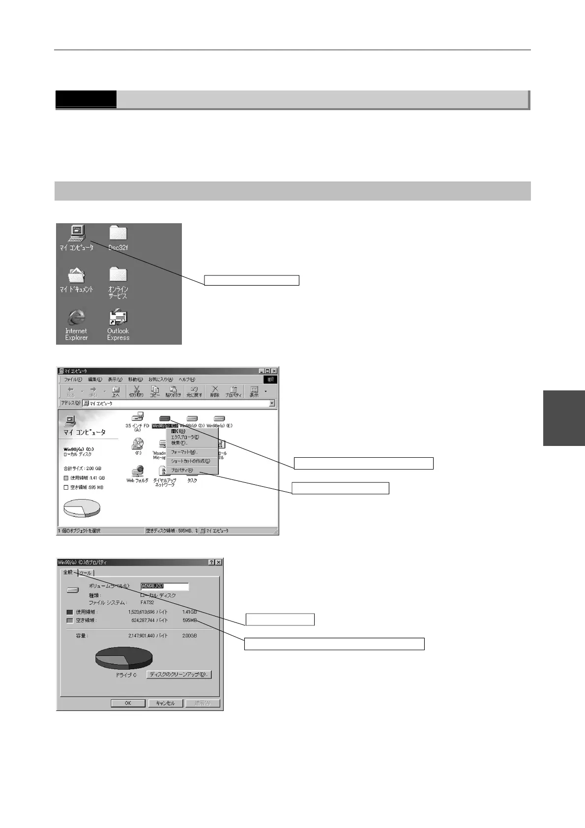 You can check the free hard disk space via the [My Computer] window. If the hard disk lacks