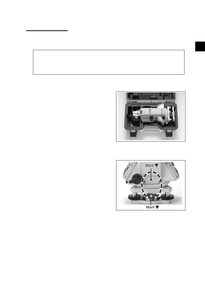 mark (t) on the leveling base clamp knob.