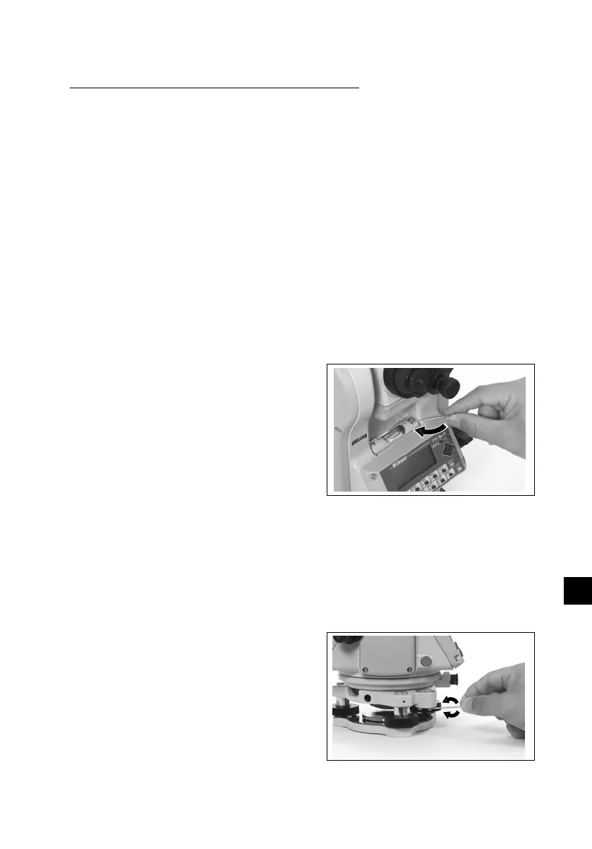(1) Set up the instrument on the tripod and follow the leveling procedures